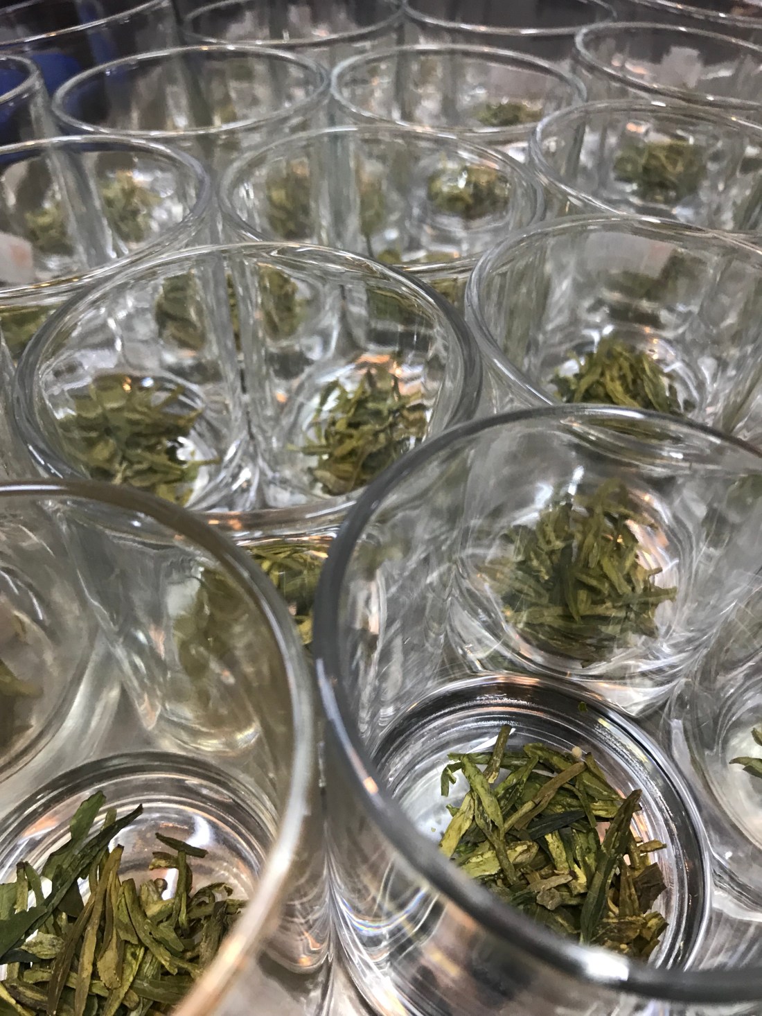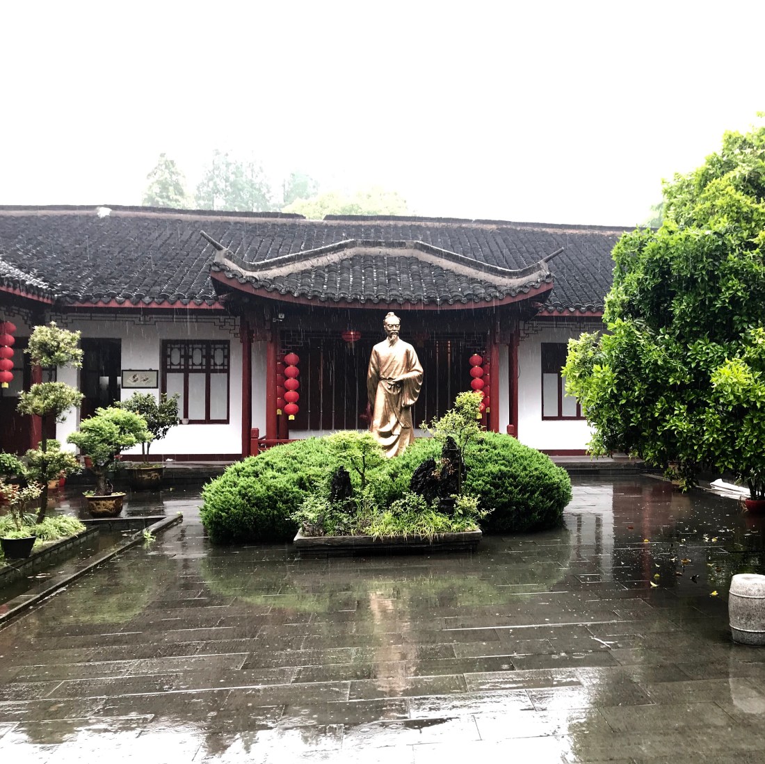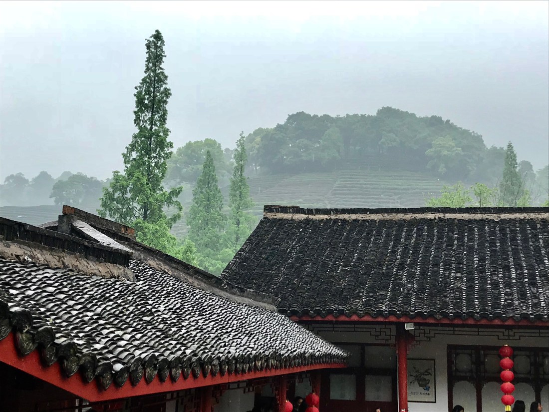 We arrive at the tea plantation — still raining — and we are sardined into the smallest presentation room yet. Grace explains the local green tea is Dragon Well tea. 3 portioned pours means “You. Are. Welcome.”