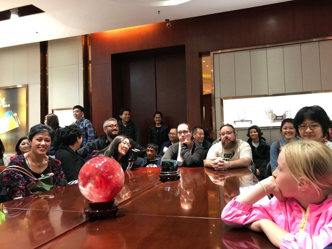 Long/short, we were on that bus for 6 hours. Talk about throwing off the schedule. We all just wanted to go to the hotel. No go succa. You haven’t relieved yourself of enough hard earned cash yet. We still have to go to the emerald showroom. OH COME ON!” the only legitimate “site” we’d seen in two days was this bus that has Chinese characters on the side. Enough already.