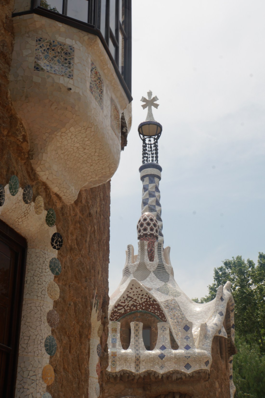 Despite Gaudi doing another mad hatter number on the grounds — 3km of roads, walks, plazas and gardens, it was a flop and by 1914 was abandoned. Yay! One for the little guys because now we get a gated park! The pavilions at the entrance will strike terror into any witch who dares to enter for its immediate comparison to Hansel and Gretel’s wood stove widower maker.