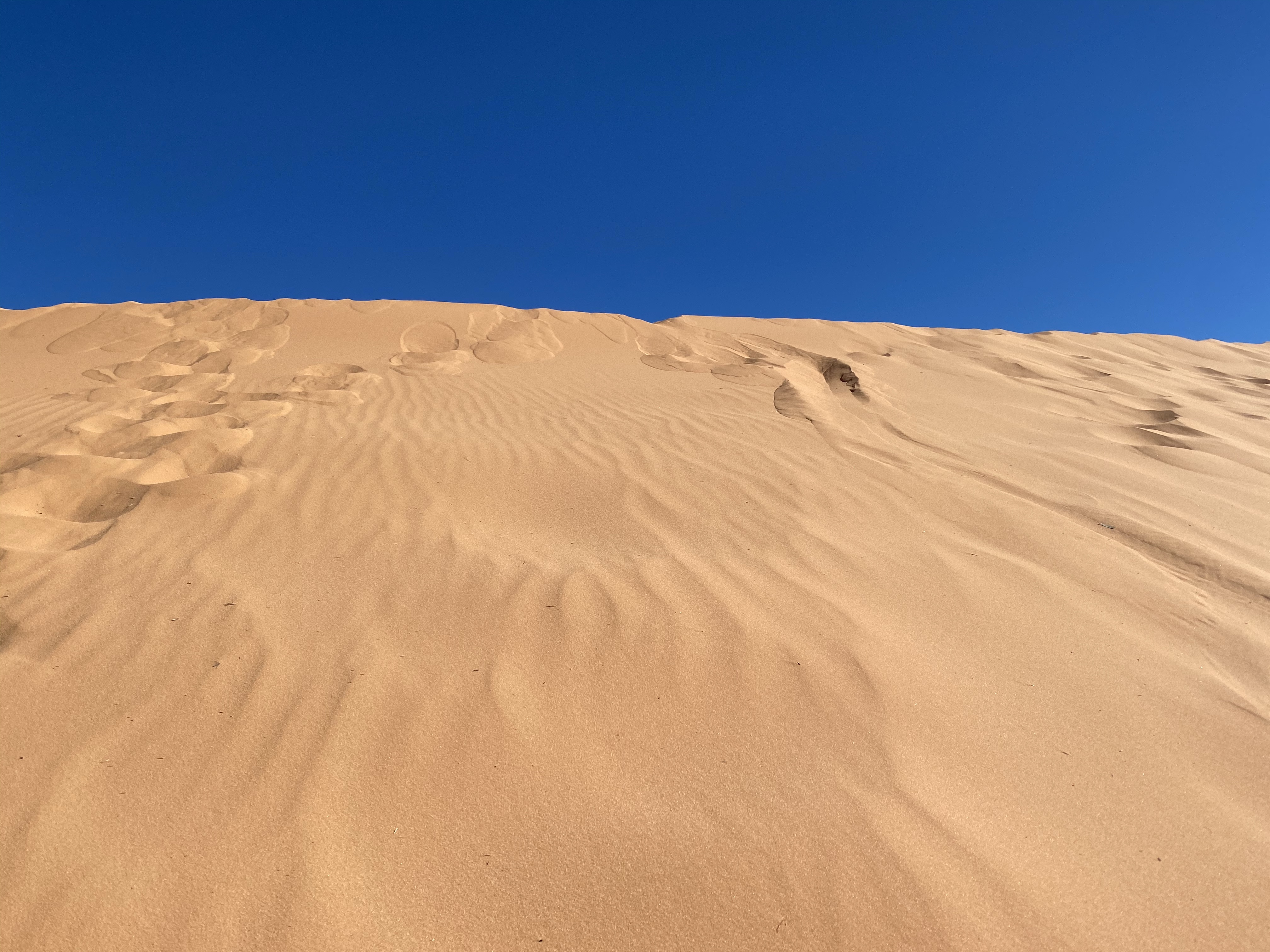 To say this was a sight I’ve never seen before is an understatement. The blue sky (it has been as blue as the pictures show) against windblown sand as fine as Ryan Gosling. It does in fact play tricks with your mind because it’s hard to discern where the dune is vs. just a flat expanse.