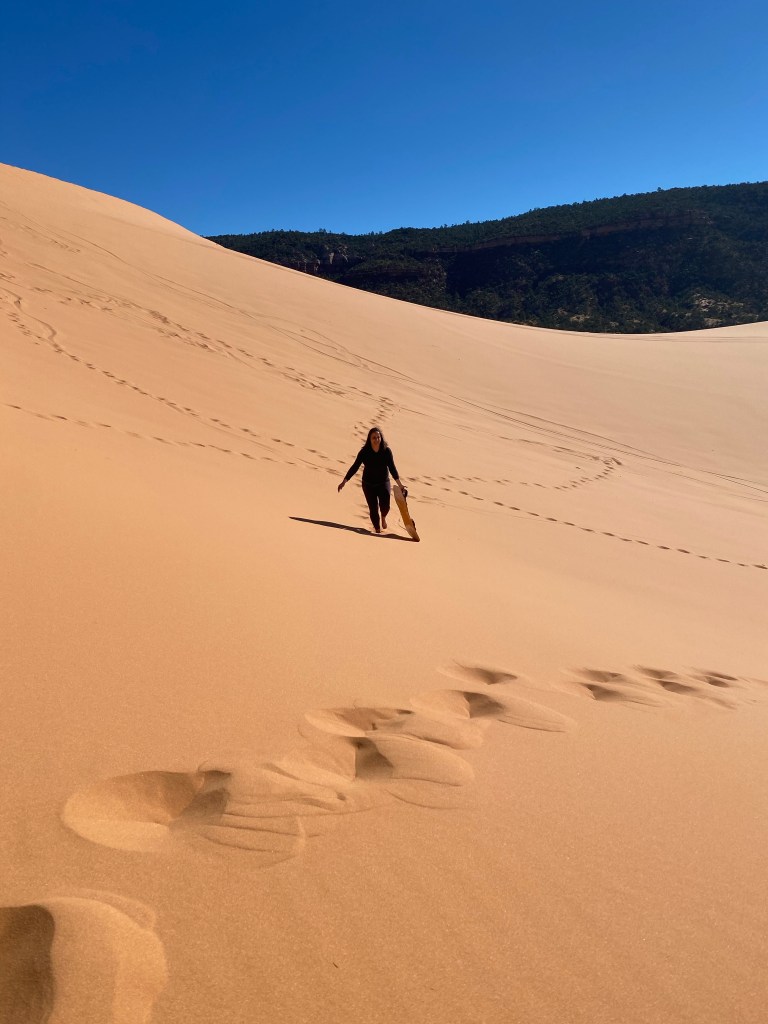 Today was Jenny’s day. The snow boarding queen would finally try her hand at sand boarding. I had Kanarra. She had Coral Pink Sand Dunes (the only major sand dune field on the Colorado Plateau.)
