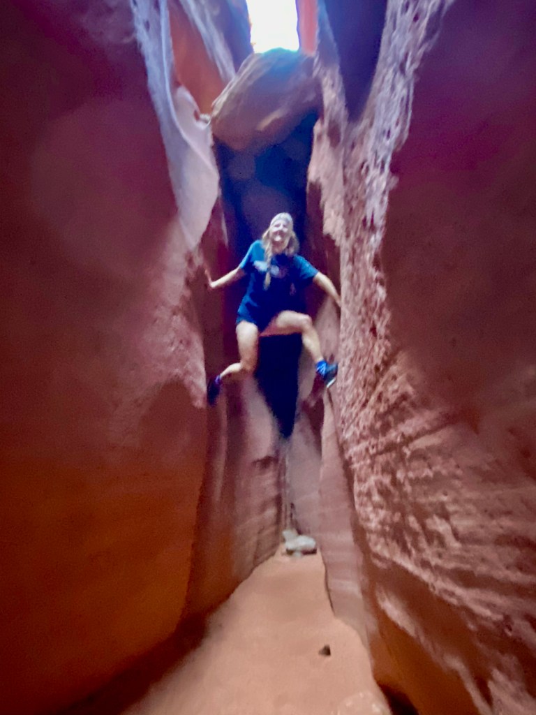 The canyon comes to an end. It’s not a through canyon.) Gordon said people try to spider they’re way up. Few people make it. And never a girl. Game. On. Jenny did her beat Egyptian and made it half way up. Truly, she would have made it if she had on grippy hiking boots instead of her sneaks.